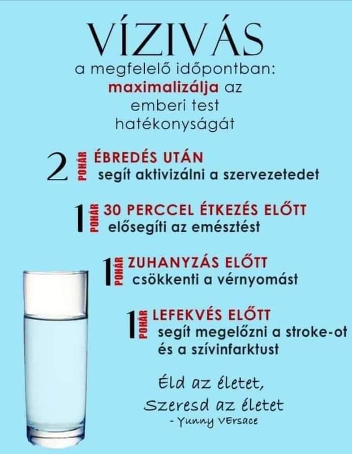 Naponta ajánlatos 2,5 - 3 litert meginni belőle, és az sem mindeggy mikor, mivel a különböző időpontokban fogyasztott víz a testünk különböző működési folyamataiban segítenek.